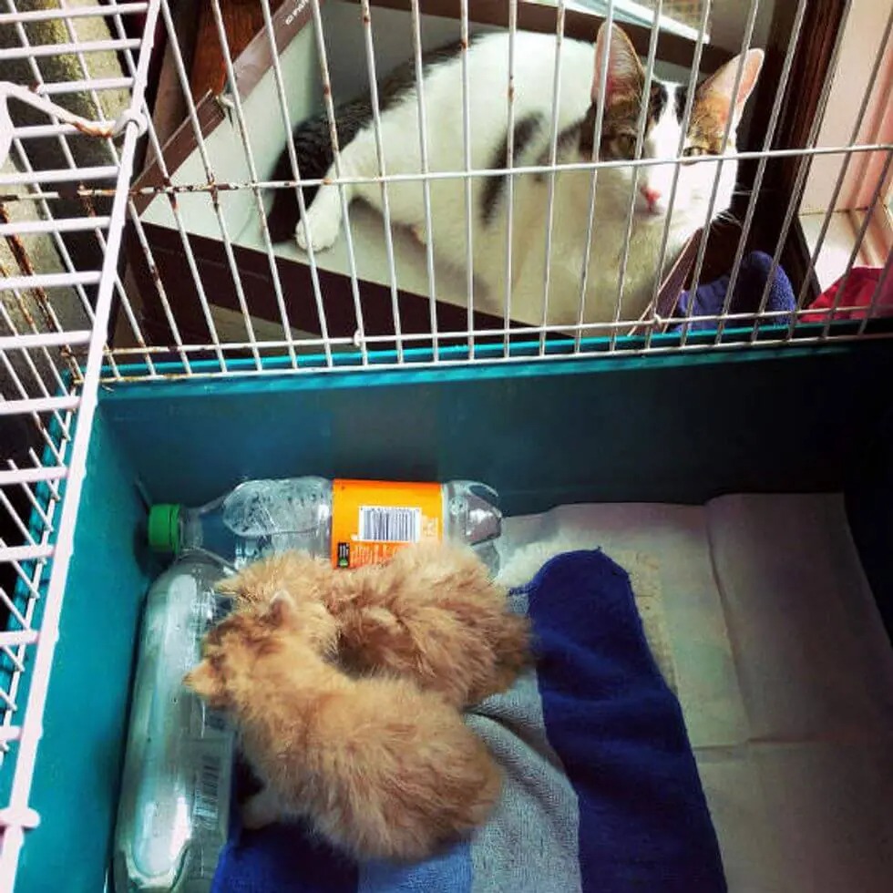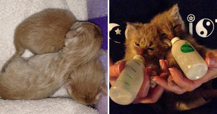 These 2 tiny ginger babies were in a dire situation when “one of my mother’s co-workers heard noises coming from a kitchen trash bag and upon searching that squeaking bag of trash, found two newborn kittens inside a sealed ziploc bag.” – That’s what Cathy McCaughan expressed on her social media about Buttercup and Westley.