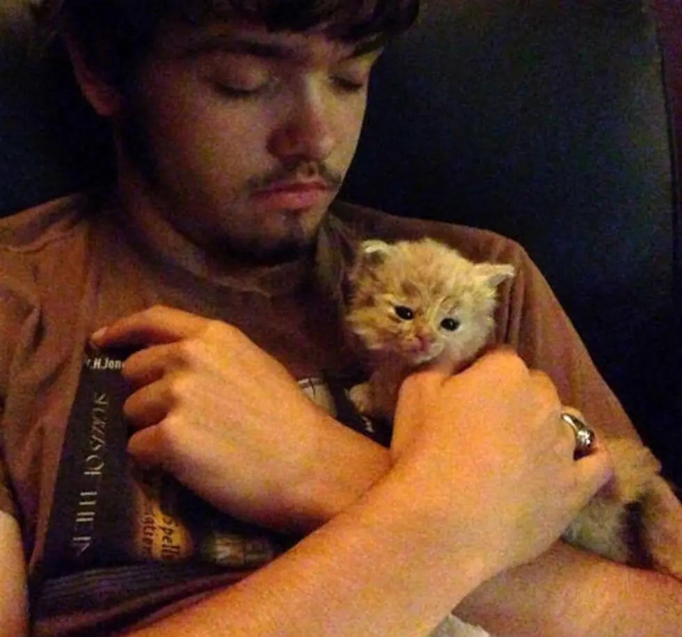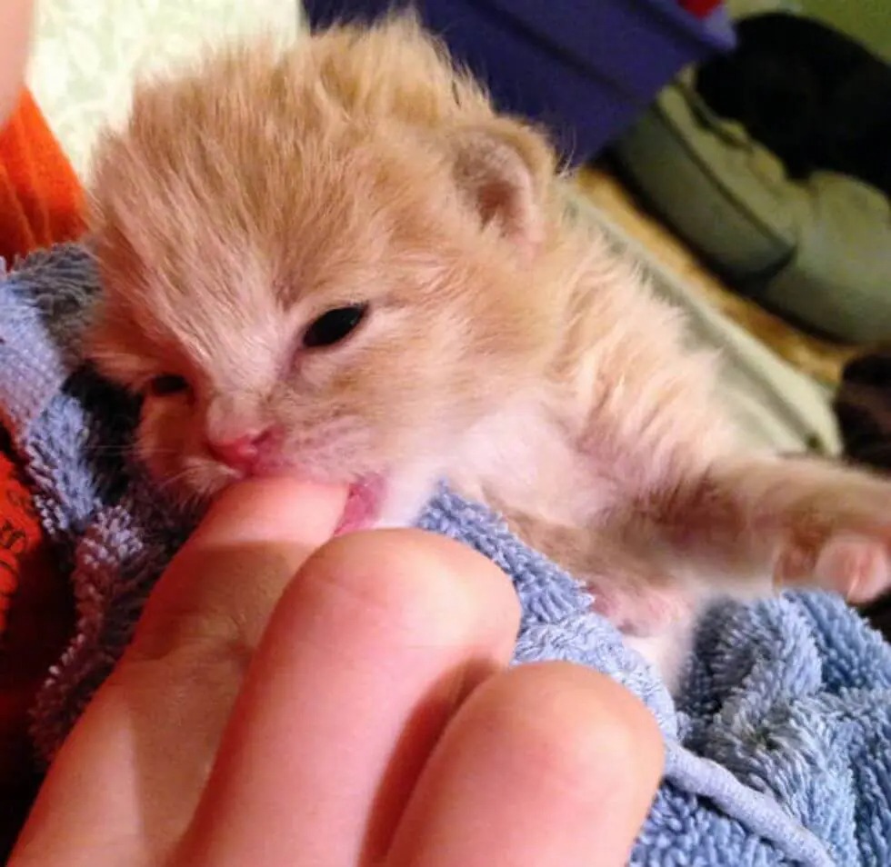 These 2 tiny ginger babies were in a dire situation when “one of my mother’s co-workers heard noises coming from a kitchen trash bag and upon searching that squeaking bag of trash, found two newborn kittens inside a sealed ziploc bag.” – That’s what Cathy McCaughan expressed on her social media about Buttercup and Westley.