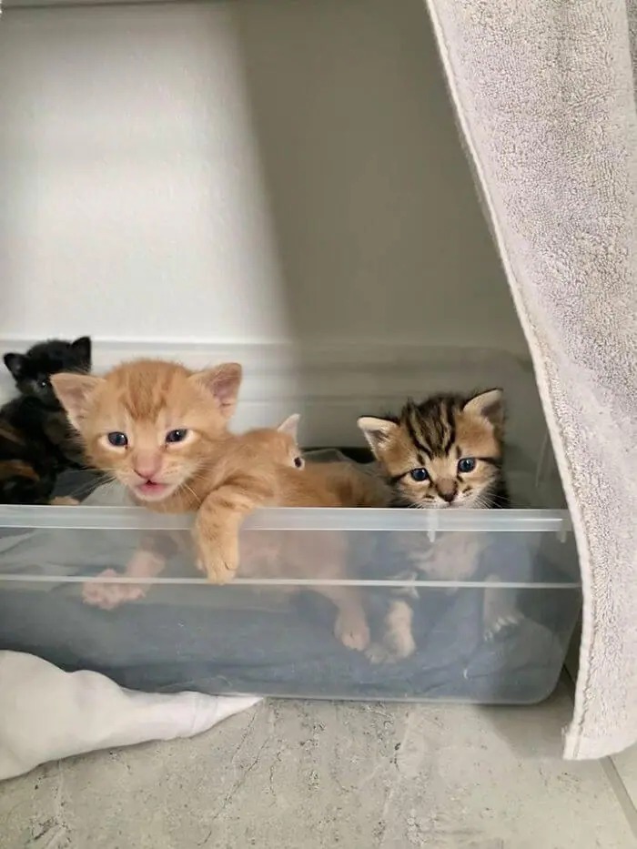 Erin called their local animal shelter, Williamson County Regional Animal Shelter, which provided them with a wealth of information and set them up to ‘foster’ Kevin and her kittens. “This means they’ll all be chipped, fixed, and vaccinated when they’re old enough to go to their everlasting homes!”
