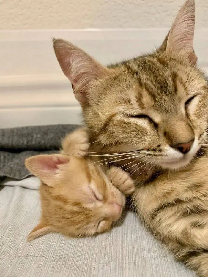 There was one thing that Erin and Landon worried about. They had never previously cared for kittens or even a female cat, so they were apprehensive at first. “We spent all of our time reading articles about what to expect when your cat is pregnant and requesting advice from friends who had fostered kittens after she had her babies four days after we returned from the vet.”