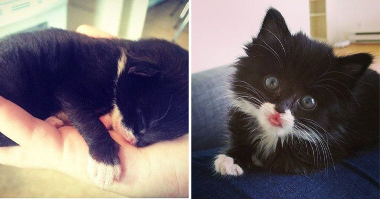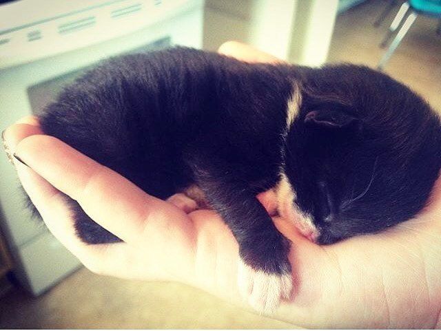 “When I found him I couldn’t tell if he was alive. I started to feel panicked once I realized that he wasn’t meowing any more. So I brought him straight to the vet. They said he was less than a week old and had been abandoned by his mother.”