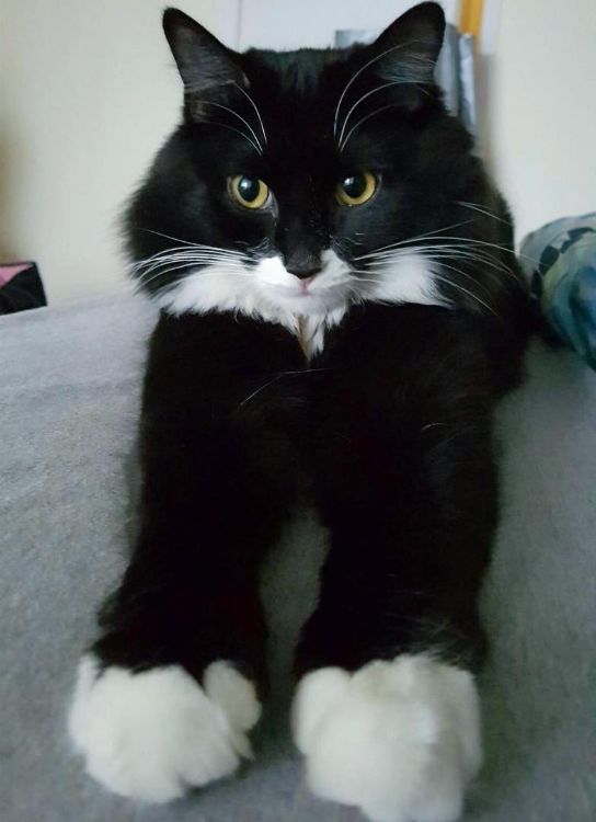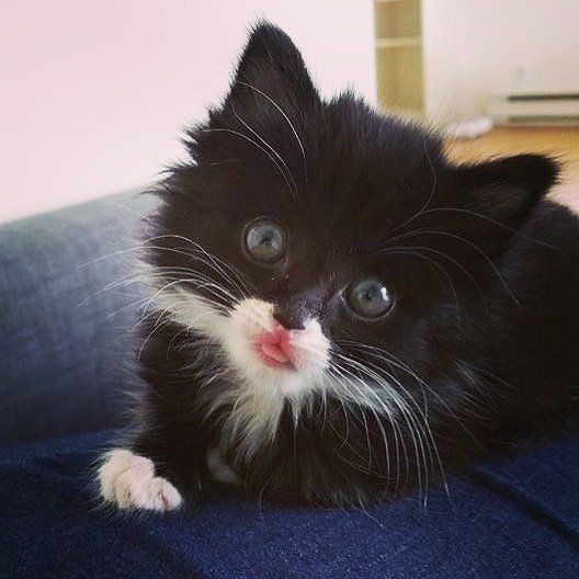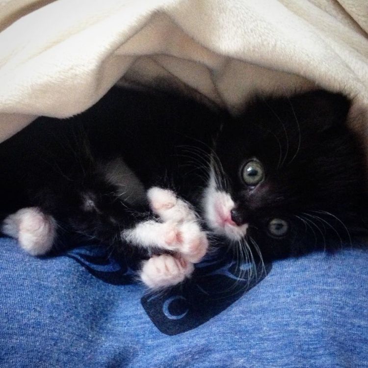 The tuxedo kitten grew into a beautiful boy who loves his mom enormously. “He is super spunky, likes to act like the man of the house. But when no one is around he still acts like my baby and cuddles up to me,” Kelli says