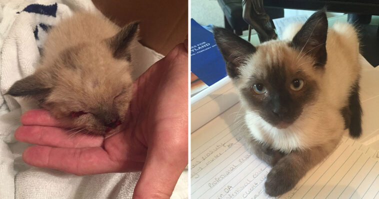 Aspen Smith was enjoying a rural drive with her mother in Georgia, U.S when she suddenly spotted a disoriented kitten scurrying in the middle of the road. Not only was the kitten scared, he was badly injured, so the women took him with them.