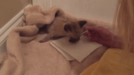 The vet said that the kitten had possibly had a brain trauma and gave instructions to follow for his eye, too