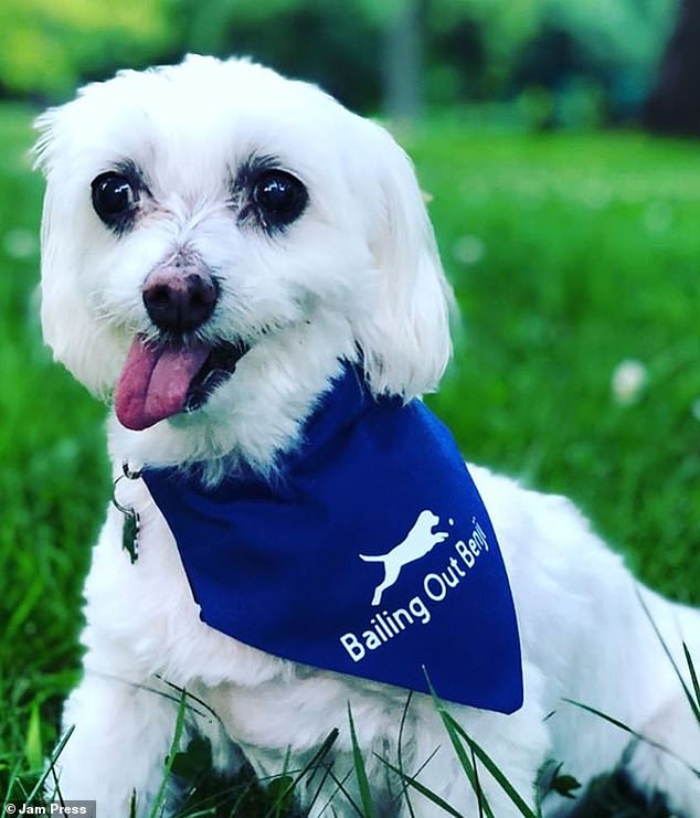 This brave pup and her owner worked with a non-profit called Bailing Out Benji, which exposes the connection of pet stores to puppy mills while at the same time educating people to adopt instead.