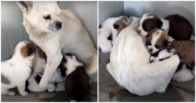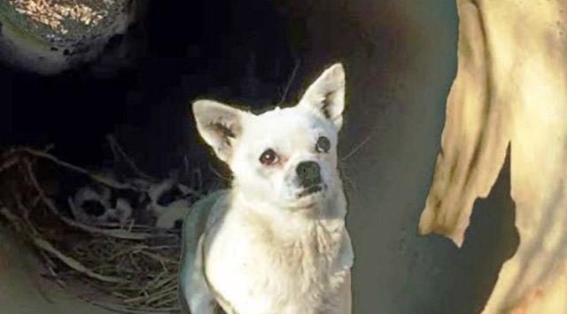 When rescuers arrived, they realized that she was a nursing mother. Now the rescue went from saving one dog to saving however many puppies she had.