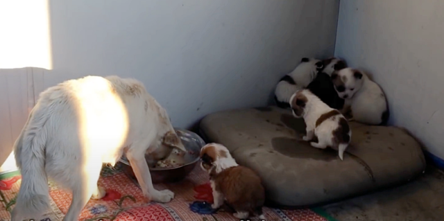 They brought the puppies and mama back to their rescue, fed them, and kept them warm.