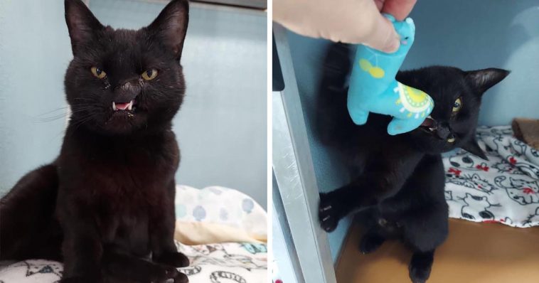 The black kitten was born with a cleft palate, but the shelter workers took her to the veterinarian, who concluded that she didn’t need surgery. When eating, a piece of food may become trapped and cause you to sneeze until you recover; otherwise, your cleft palate has no effect on your life; it only makes you appear different.