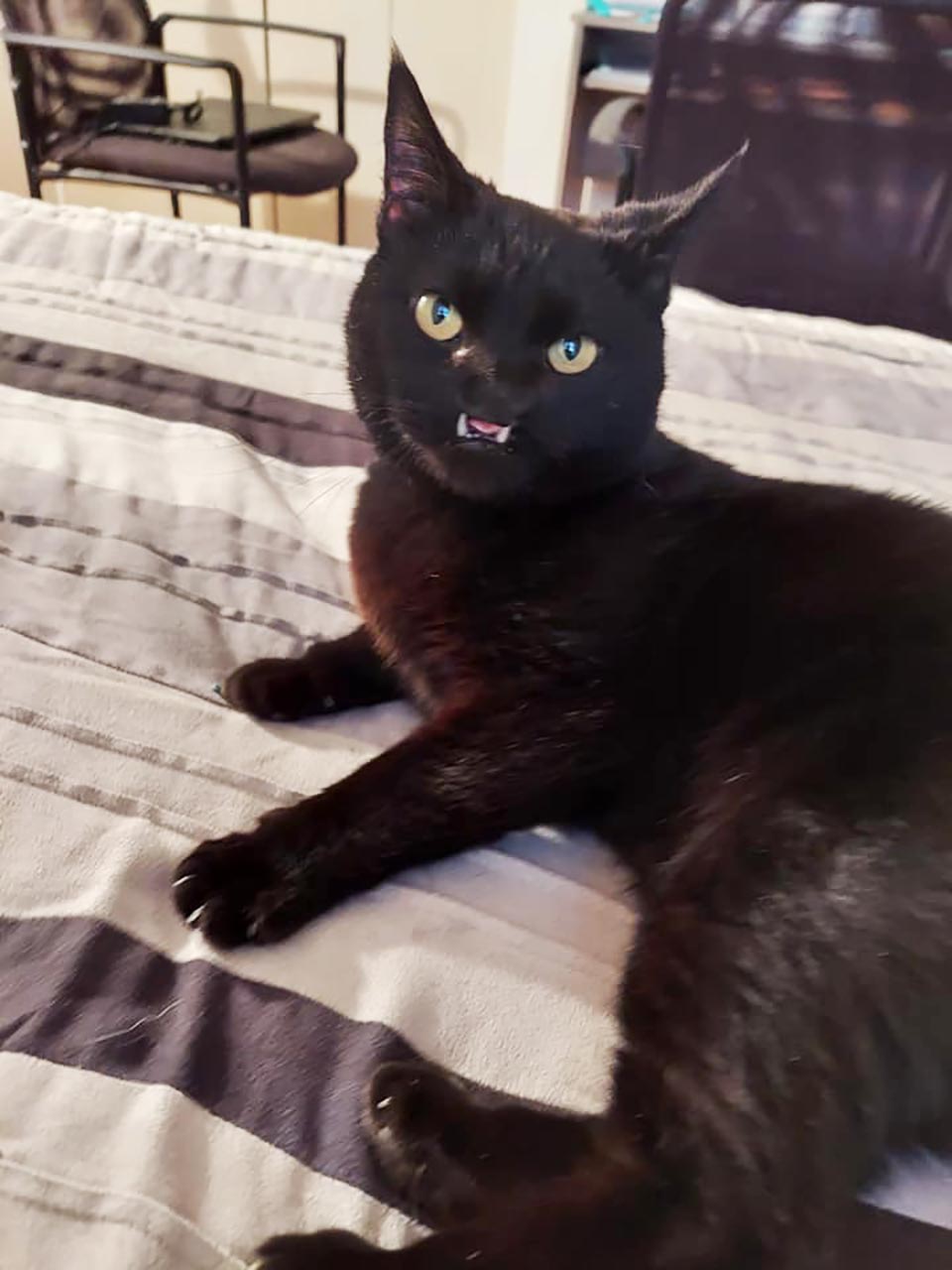 “She is a constant talker. She is really fun. When she sees us in the morning, she is very happy. It is a wonderful feeling. He has to play with five other cats, all of whom were rescued, as well as a “Fun dog. Onyx will have problems for the rest of his life. Nevertheless she is just ideal for my family!”