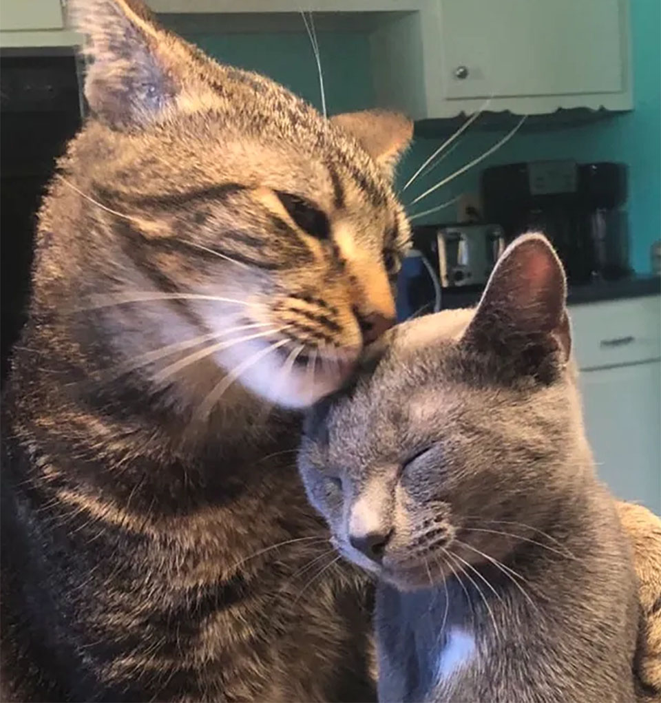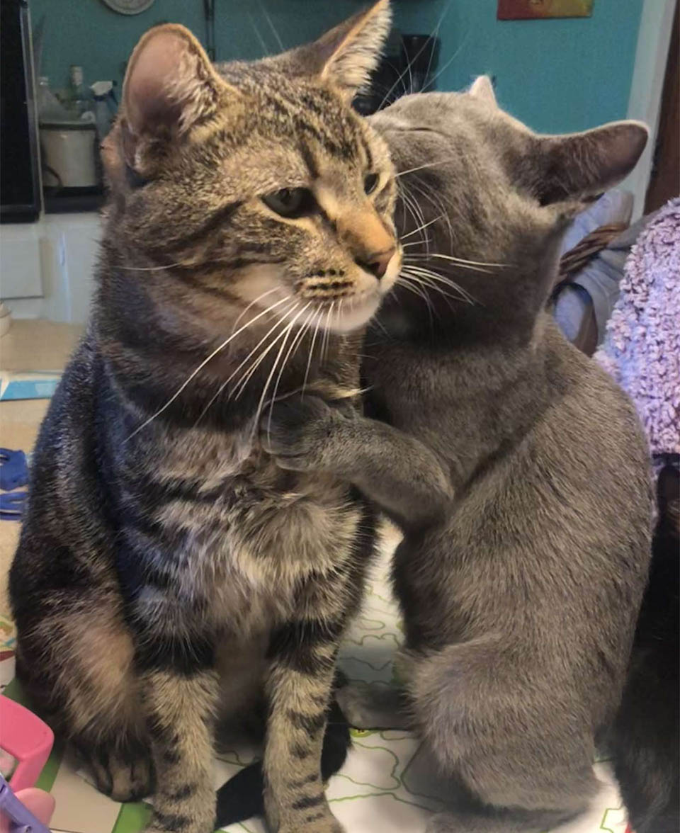 These two felines’ personalities would most certainly conflict under other circumstances, yet Buddy welcomed his new sister without hesitation.