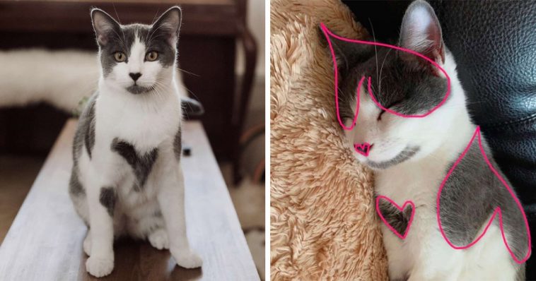 The kitty isn’t only covered in hearts; he’s also full of love.