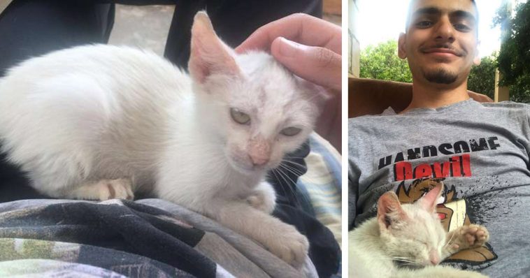 “The first thing she does is get off the sofa, look me in the eyes, and start meowing for 20 seconds straight. Ali took the little kitten to bathe her, she liked it and it was at this moment that he thought of adopting her.