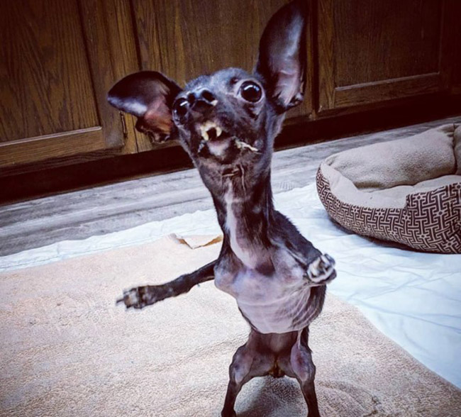 Freddy is a tiny pooch that rescuers found under a car. He was turned into the rescue organization Marley’s Mutts Dog Rescue from Tehachapi, California. Amazingly, the rescue boasts a 99% success rate for adoptions.