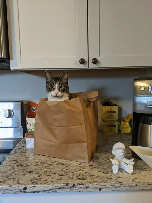 We always catch them sitting, sleeping, chilling in the most unusual places like in a jar, tiny cardboard boxes that are not their sizes. According to Ingrid, that is just cats’ instincts. “Cats like small, confined spaces. They like to hide and feel safe. That is why we often see them squished into seemingly uncomfortable spots.” She also said why the cattos like boxes so much. “since cardboard is insulating, it helps cats maintain their body temperature of 100-102.5 degrees easily without having to expel much energy.”