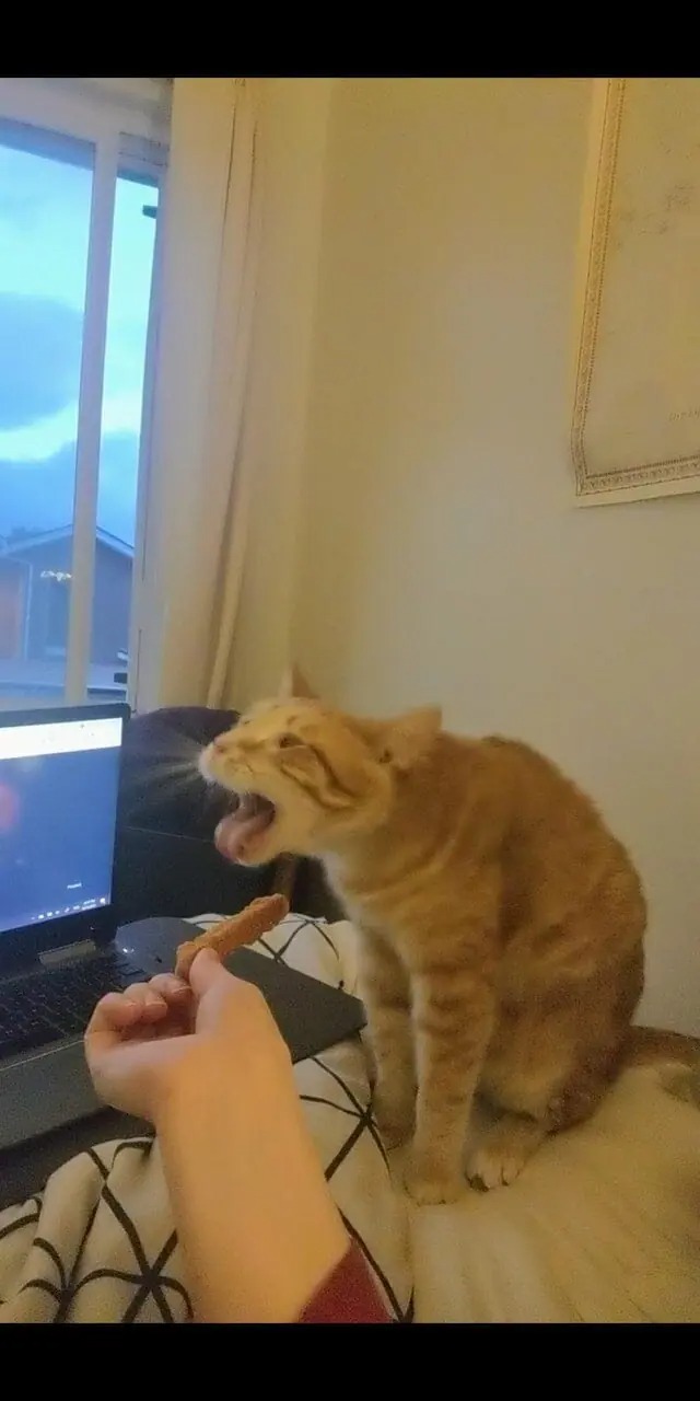 #5 Cat tries to steel the breaded chicken he hates, gagging in regrets every single time