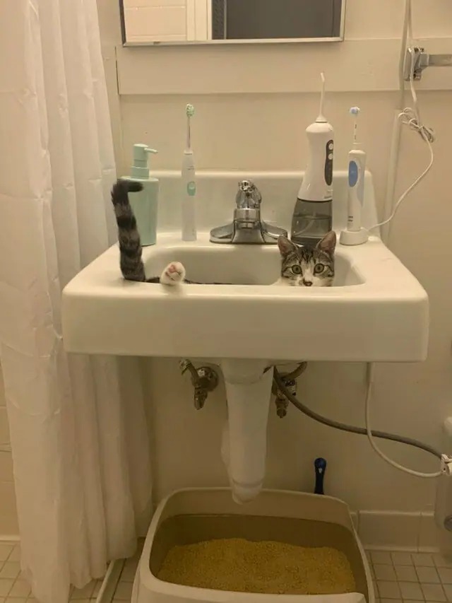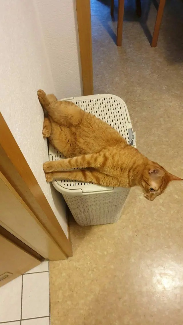 In an interview, founder of Fundamentally Faline Ingrid Johnson explained that the reasons why our cats do such strange things are because they have “bodies that are extremely flexible and they are naturally curious yet cautious, so they get themselves into precarious situations quite readily. Cats also like to be up high, which is why you see the cat in the shower caddy.”