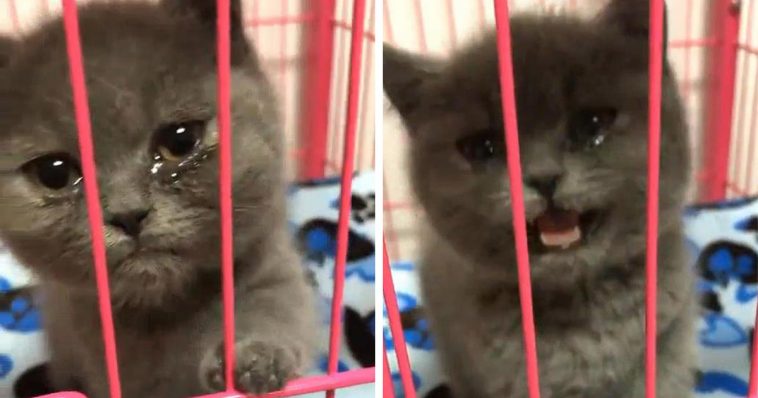 When he walked towards the cat cage, this person saw the little cat crying very badly. Even the cat looked at its owner with a very miserable face and a somewhat unhappy expression.