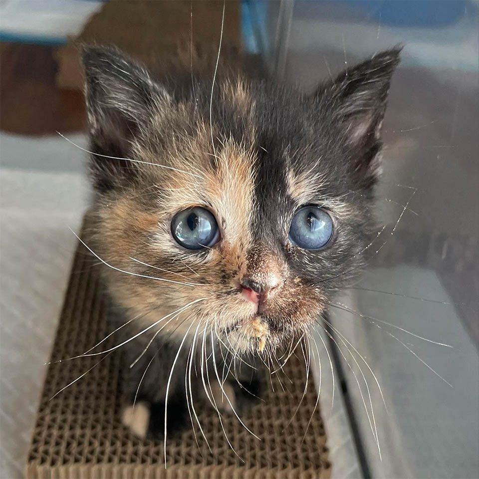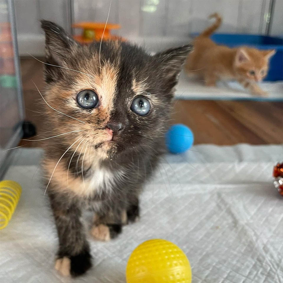 Flower and Bloom had apparently had little experience with people, but they were gradually becoming used to their care. Bloom, the tortoiseshell kitten, was the most powerful of the two, with a lot of meows in her body and a lot of fearlessness in her eyes.