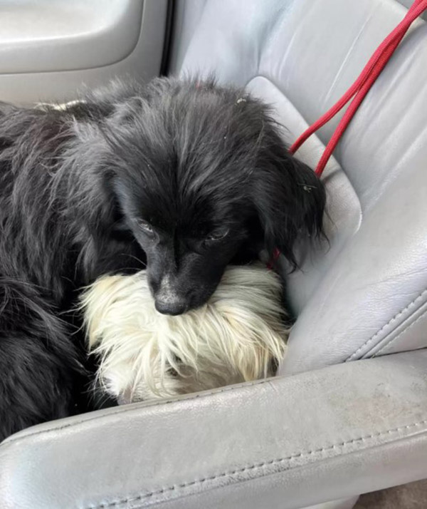 As soon as Hall found them, she realized how tense and matted the dogs were. She quickly caught one of the dogs, but it took considerably longer to get the second dog.
