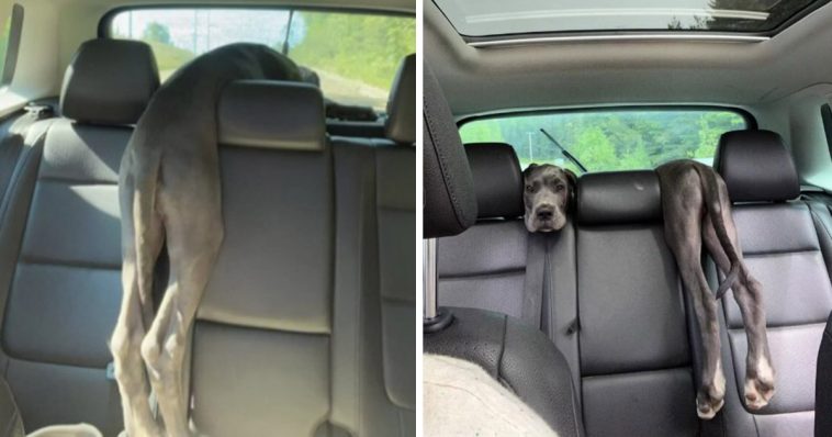 Because of this, one day after loading the trunk with groceries, she hurriedly began yelling Howard’s name when she glanced over her shoulder and noticed a pair of Great Dane legs floating in the back.