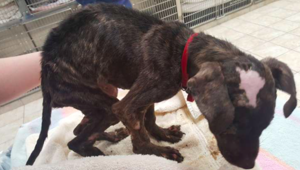 I can not imagine what they felt when they saw the emaciated puppy curled up in there.
