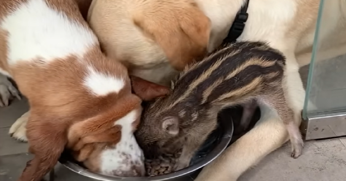 According to The Dodo, when Dora Ngai first brought the little pig into their life, nobody knew how the dogs would respond. It only took a few moments to realize that Biu Biu was more than happy to have a new friend.